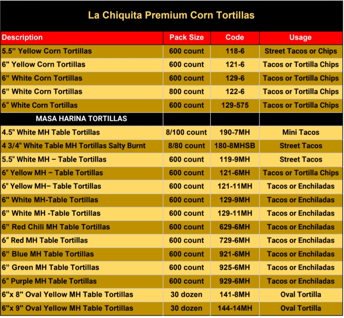 La Chiquita corn and flour tortillas are 100% Authentic Mexican Products of the highest quality.