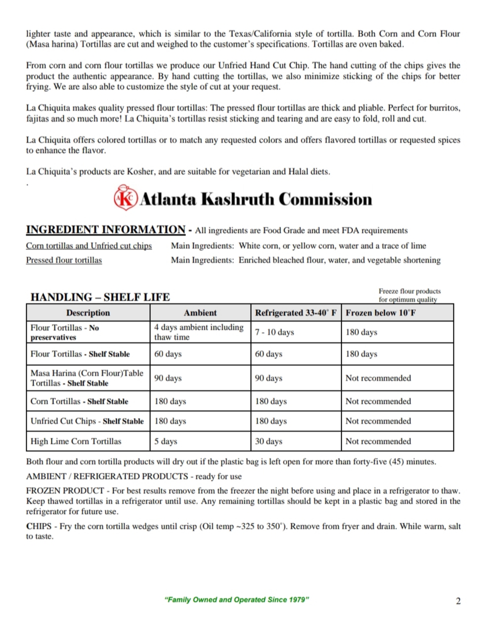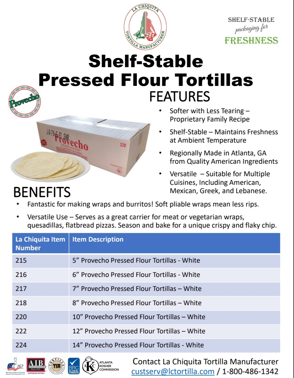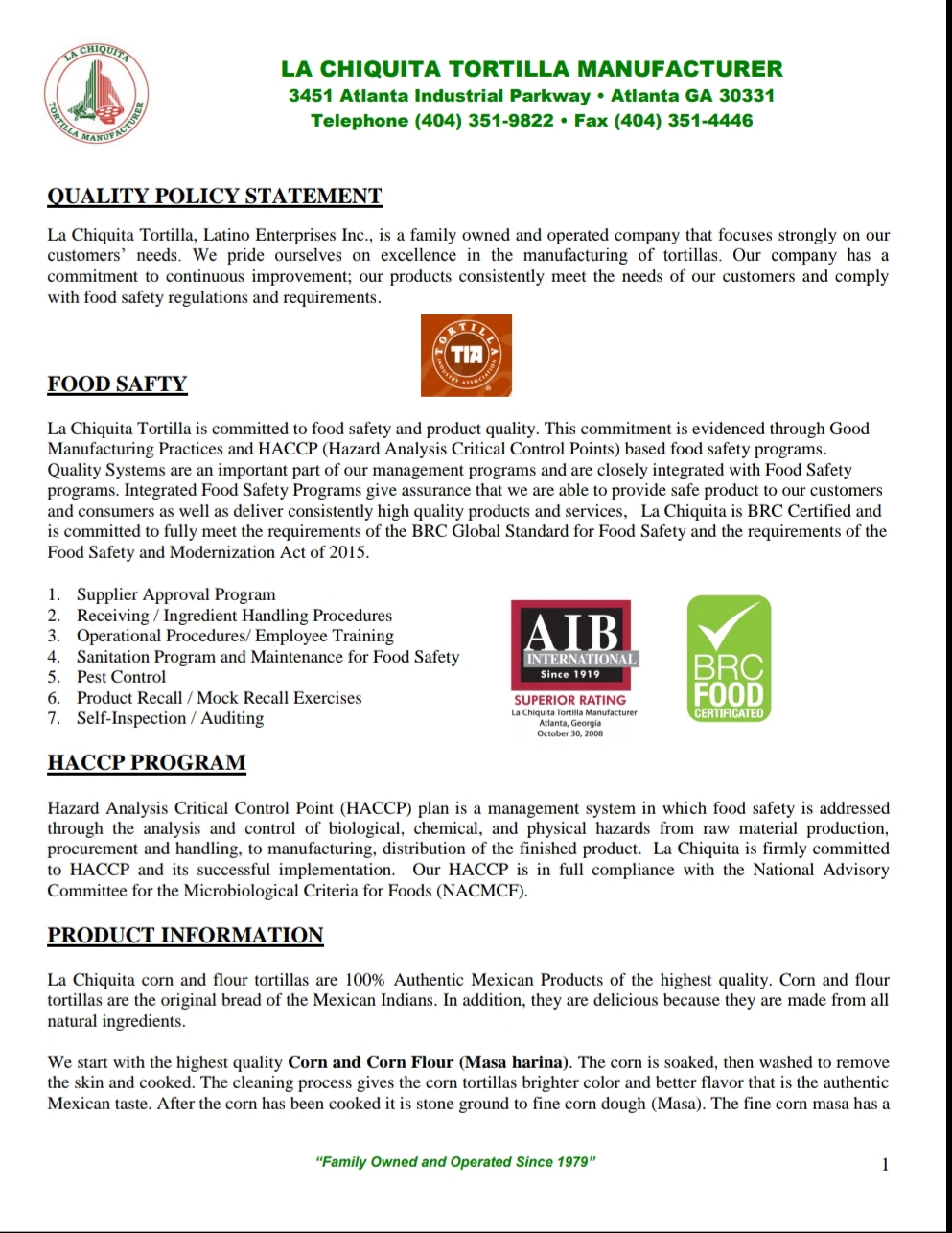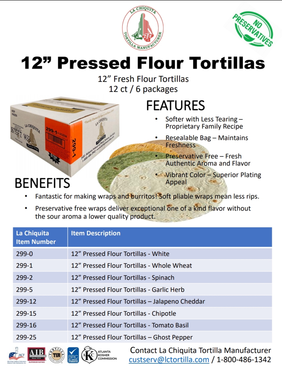 TASTE THE DIFFERENCE!!!La Chiquita corn and flour tortillas are 100% Authentic Mexican Products of the highest quality.