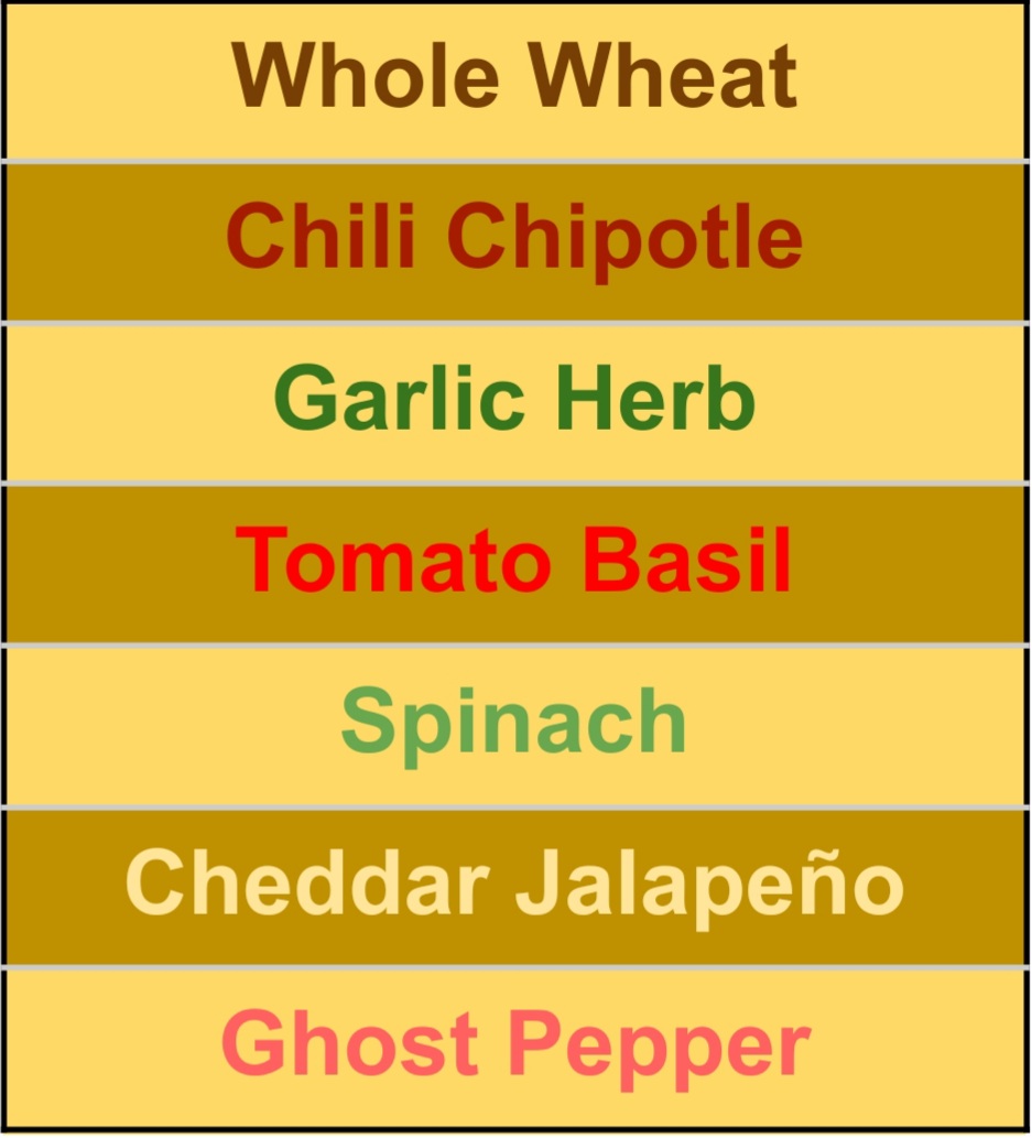 Check out our great selection of flavored wraps. These come in the standard 12”. Try one of these exciting flavors today: